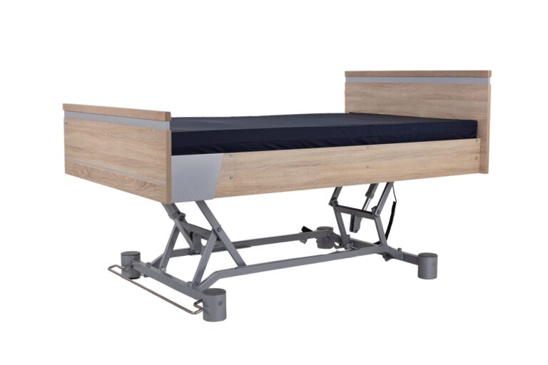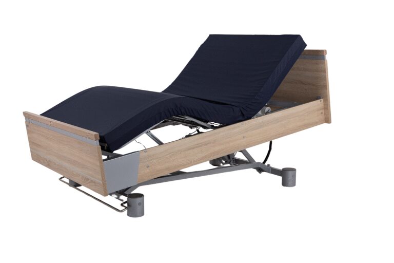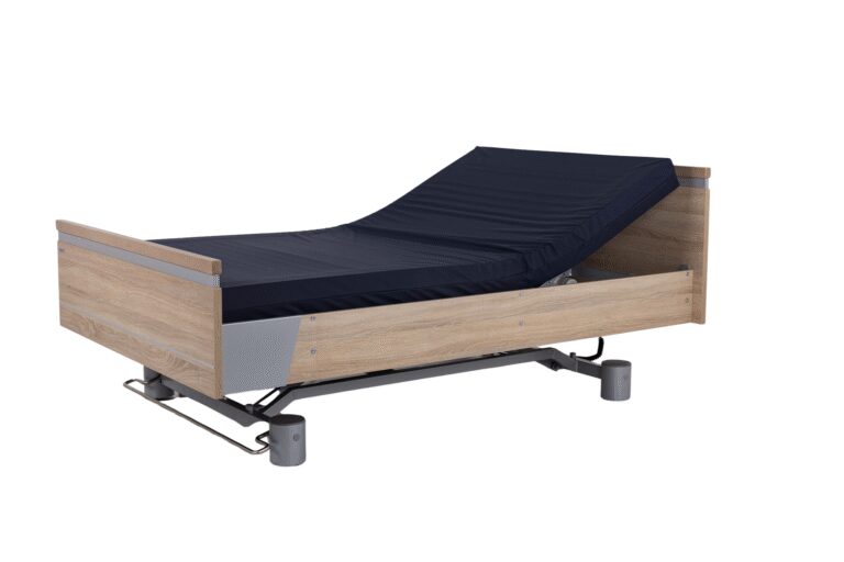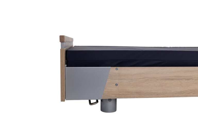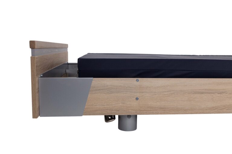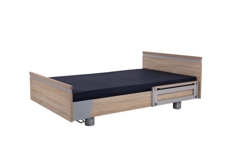 With a low position of just 25cm, the “Aura” is recommended as a fall prevention model. It’s centrally braked, concealed castors offer optimum mobility without compromising the bed’s stunning home-like character. With all of the features you will need from a care bed, such as backrest, knee break, Trendelenburg tilt in a forward and reverse direction. As well as the comfort seat and transfer/hoist positions which are all positioned using a touch of a button on the easy to use hand control.