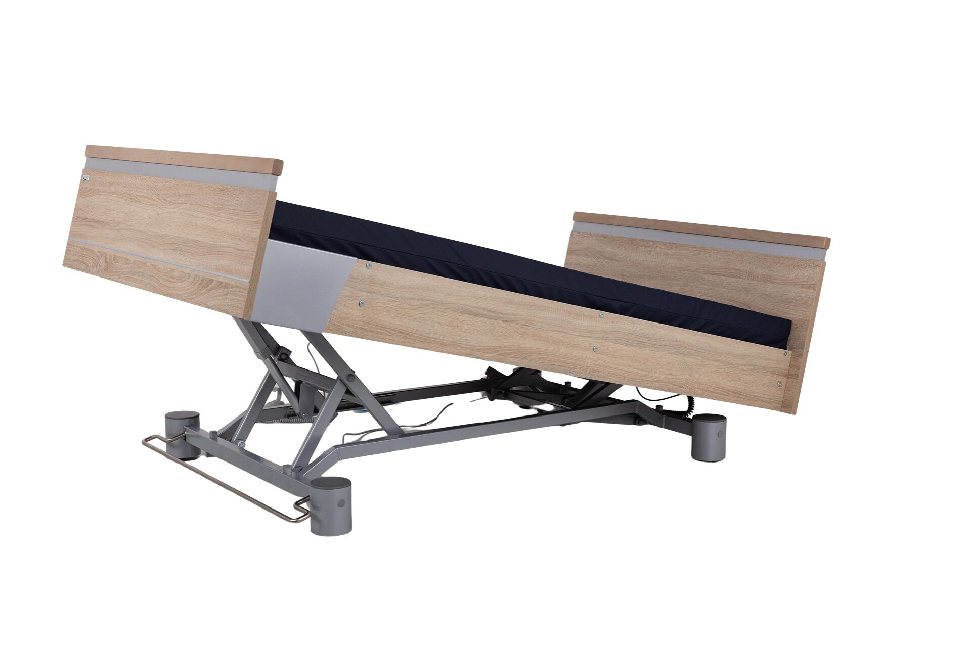With a low position of just 25cm, the “Aura” is recommended as a fall prevention model. It’s centrally braked, concealed castors offer optimum mobility without compromising the bed’s stunning home-like character. With all of the features you will need from a care bed, such as backrest, knee break, Trendelenburg tilt in a forward and reverse direction. As well as the comfort seat and transfer/hoist positions which are all positioned using a touch of a button on the easy to use hand control.